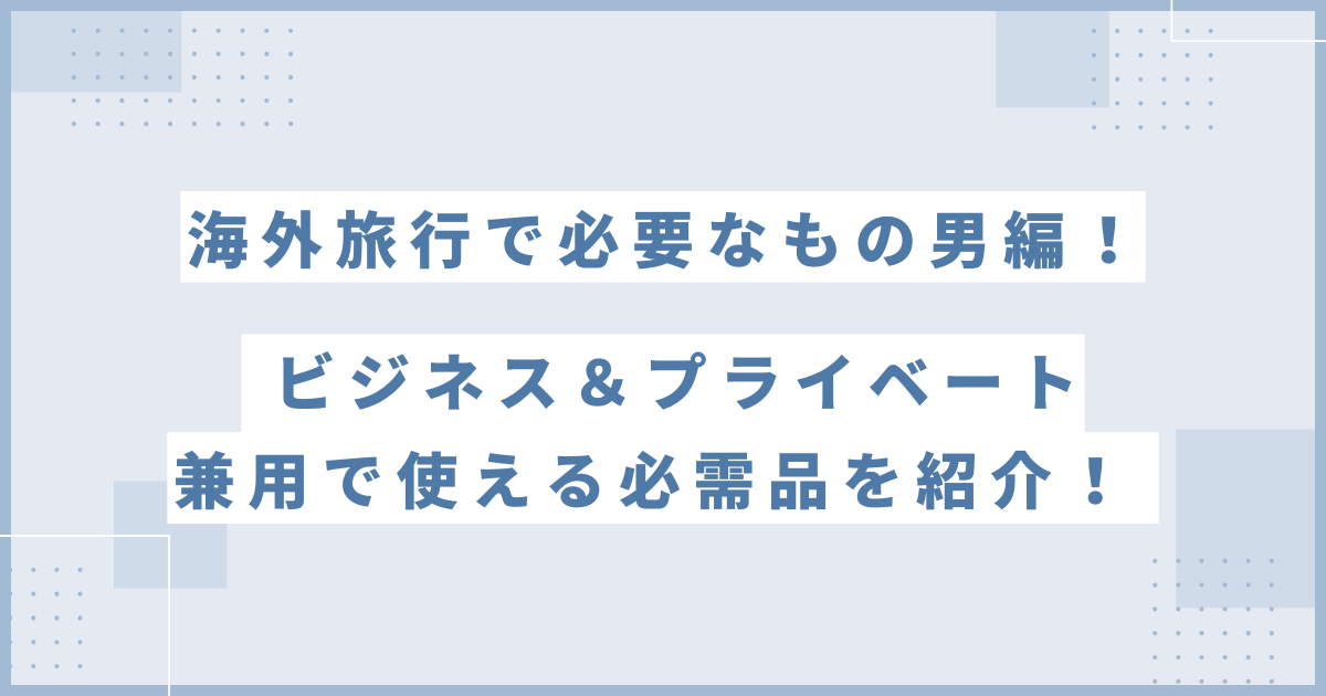 海外旅行で必要なもの男編!ビジネス&プライベート兼用で使える必需品を紹介!